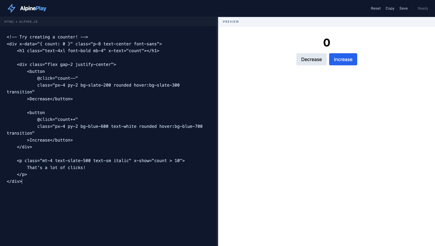 I created a live coding playground for Alpine.js with Tailwind CSS support.